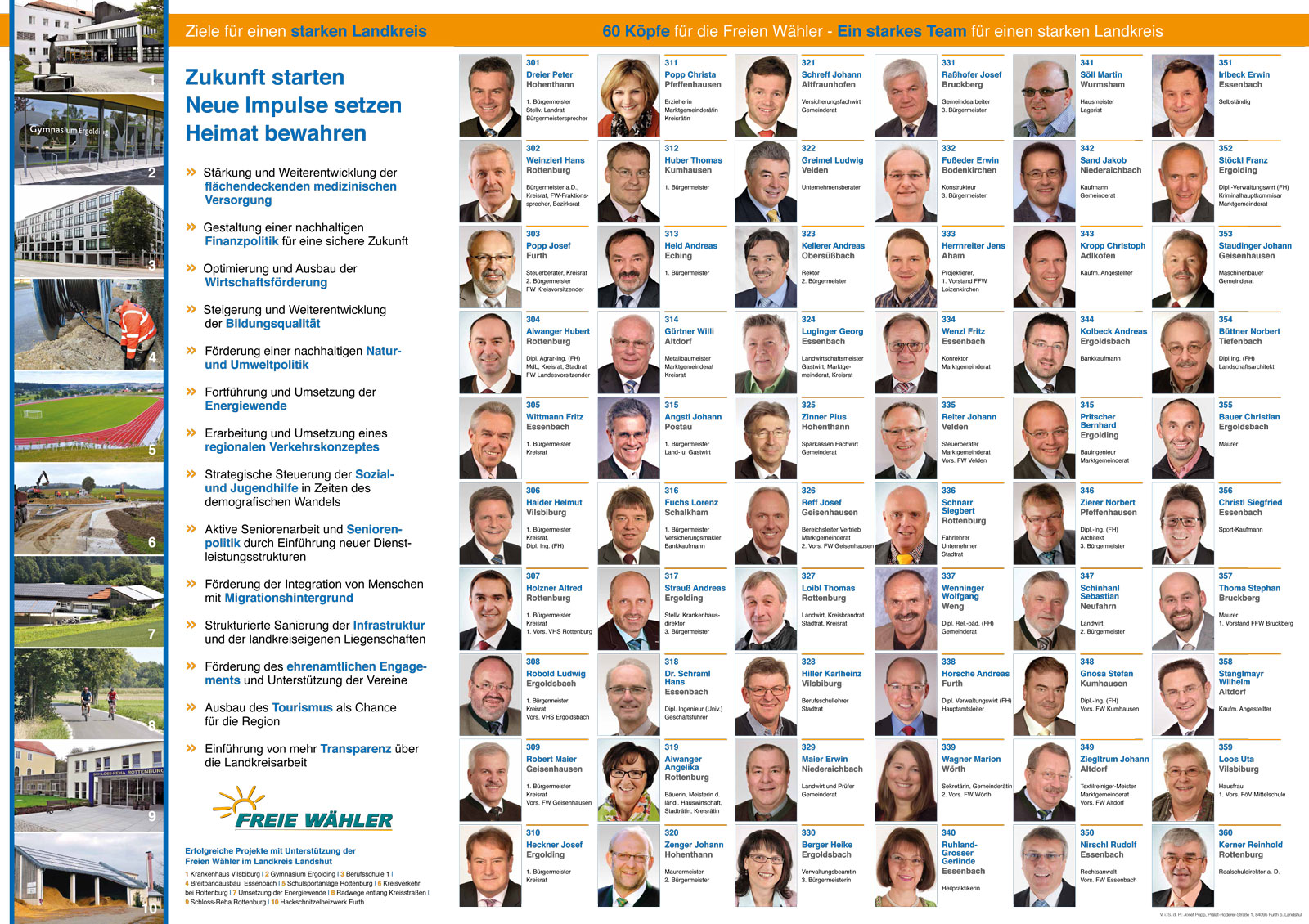 60 Mitglieder hat der Landshuter Kreistag und daher kann jede Gruppierung auch 60 Kandidaten stellen. Die Kandidaten der FW aus Ergolding hab ich Euch ja schon mal kurz gezeigt. Heute stelle ich Euch die Gesamtliste der Freien Wähler online.
