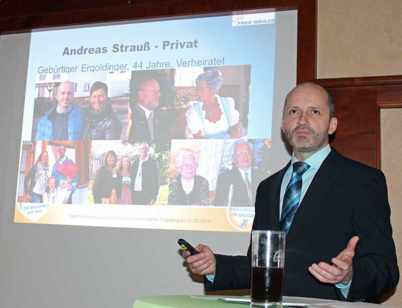 Die Freien Wähler Ergolding luden zur Wahlinfoveranstaltung ein und der Saal im Gasthaus Meyer war voll besetzt. Bürgermeisterkandidat Andreas Strauß stellte sich persönlich, jedoch auch einige Ziele von sich und den Freien Wählern vor. „Ergolding soll eine Wohlfühlgemeinde für Altersgruppen sein“, so Strauß. Daraus ergeben sich weiterhin u.a. Handlungsbereich für Kinder, Jugendliche und Familien. Wie z.B. das Anbieten von Betreuungszeiten während der Ferienzeit oder auch der Einstieg in die Medienberatung bei Kindern und Jugendlichen. Nach dem Motto „Kurze Beine – kurz Wege“ muss das verstärkte Augenmerk auch auf die Sicherung des Grundschulstandorts Piflas gerichtet werden.