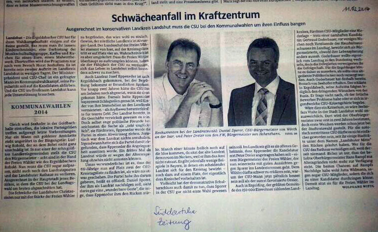 Von Andreas Strauß | 20. Februar 2014 | Kategorie: Allgemein | Kommentare deaktiviert für Überregionale Berichterstattung über Landratswahlkampf