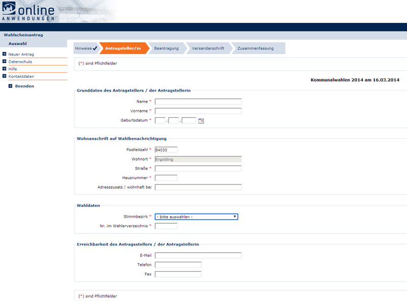 Formular ausfüllen und schon könnt Ihr entspannt zu Hause Eure Wahl treffen.