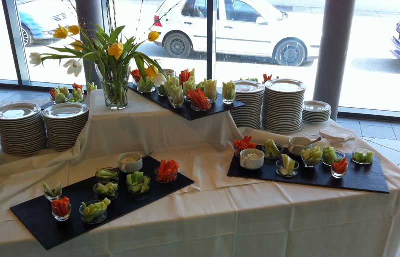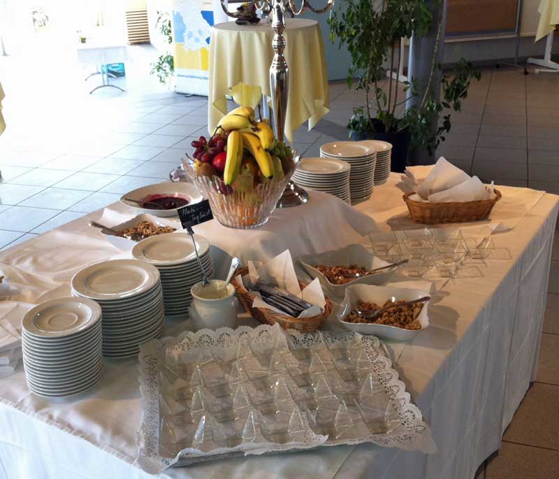 Anschließend wurden Modellprojekte vorgestellt und die Leiter bzw. Beteiligten berichteten über ihre Erfahrungen und Erfolge. Im Foyer wurden Beispiele für eine gesunde Ernährung gezeigt. Und damit wir wissen, wie gut gesunde Ernährung schmecken kann, durften wir auch gleich herzhaft zugreifen.