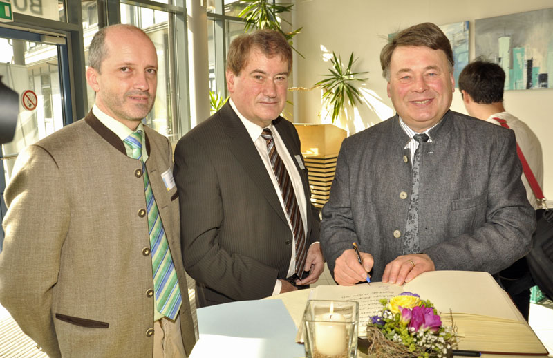 Von Andreas Strauß | 21. Juni 2013 | Kategorie: Allgemein | Kommentare deaktiviert für Goldenes BuchIm Rahmen der Auftaktveranstaltung des Modellprojekts „Netzwerk Generation 55 plus Ernährung und Bewegung“ hat sich der Bayerische Staatsminister für Ernährung, Landwirtschaft und Forsten Helmut Brunner in das Goldene Buch des Marktes Ergolding eingetragen. Im Beisein von 1. Bürgermeister Josef Heckner und 3. Bürgermeister Andreas Strauß blätterte Minister Brunner im Goldenen Buch und konnte sowohl bekannte Gesichter aus Politik, Sport und vielen anderen Lebensbereichen erkennen. Minister Brunner freute sich sehr über die freundliche Begrüßung in Ergolding und verteilte an begeisterte Bürgerinnen und Bürger Autogrammkarten. Anschließend eröffnete er die Veranstaltung mit der Aussage „Jeder will alt werden, aber keiner will älter werden“ und stellte mehrere Modellprojekte vor.