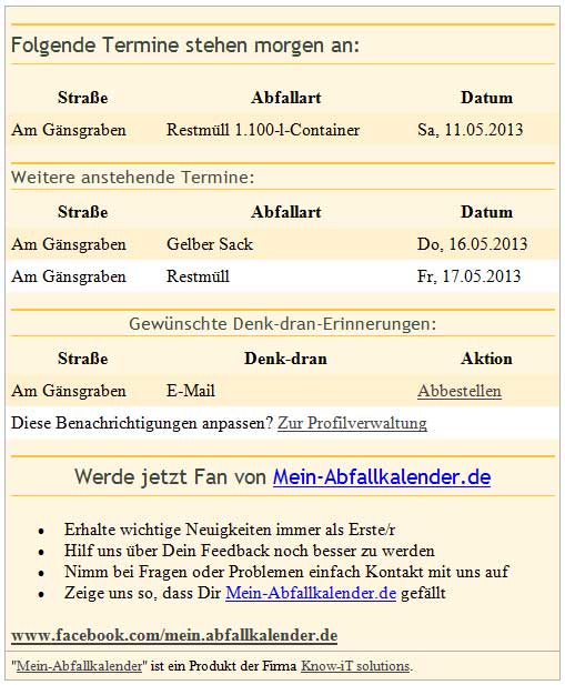 Von Andreas Strauß | 19. Mai 2013 | Kategorie: Allgemein | Kommentare deaktiviert für Mülltermine Neu und ganz modernDen jährlichen Abfallkalender habe ich natürlich auch bei mir an der Wand hängen. Aber jetzt gibt es auch noch eine neue Lösungen zum Thema Müll.
