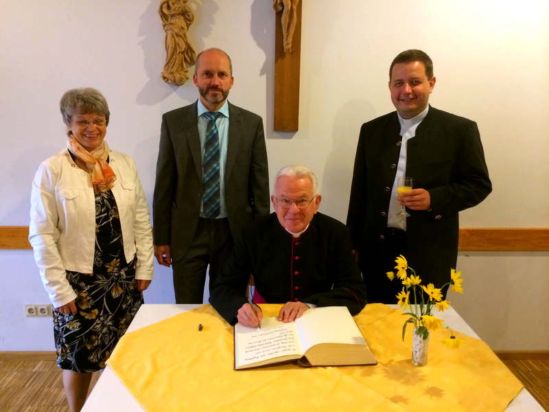 Am Samstag durfte ich der Firmung in der Kirche St. Peter in Ergolding beiwohnen. Domdekan Prälat Anton Wilhelm zelebrierte die Firmung. Mit seiner sehr sympatischen Art und den klaren zeitgemäßen Worten erhielt er die volle Aufmerksamkeit der Zuschauer, so auch der 48 Firmlinge, die sich schon intensiv auf diesen Moment vorbereitet hatten. Mitgestaltet wurde die Kirche durch die Chöre Laudate, Zwischentöne und Nachwuchschor unter Leitung von Elisabeth Plötz. Im anschließenden Stehempfang konnten sich die Teilnehmer auch näher kennenlernen. Prälat Wilhelm durfte sich dabei auch in das Goldene Buch des Marktes Ergolding eintragen.