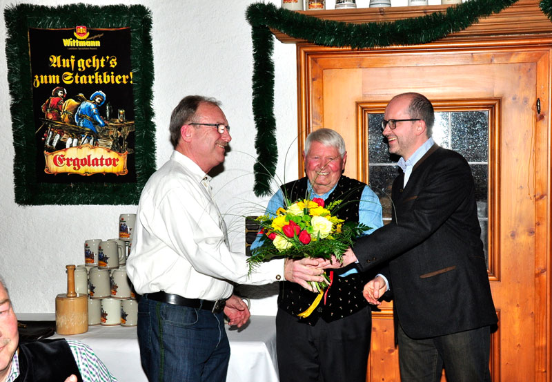 Josef Kell bekommt von Heini Hermann und mir einen Blumenstrauß für die erkrankte Gattin, die leider nicht kommen konnte.