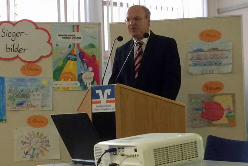 Von Andreas Strauß | 9. März 2015 | Kategorie: Allgemein | Kommentare deaktiviert für „Immer mobil – immer online“So hieß das Motto des 45. Internationalen Jugendwettbewerbs der Raiffeisenbank Altdorf- Ergolding. Und über 250 Schülerinnen und Schüler der Grund- und Mittelschule Ergolding haben sich bei diesem Wettbewerb beteiligt. Als Bürgermeister war ich mit 2 Lehrkräfte bei der Auswahl der besten Bilder mit dabei. Das war eine schwierige Aufgabe, da sich die Mädels und Jungs sehr viel Arbeit gemacht haben und dementsprechend schöne und interessante Bilder herausgekommen sind. Am Freitag nachmittag fand nun die Preisverleihung in den Räumen der Raiffeisenbank statt. Vorstand Andreas Antholzer höchstpersönlich nahm die Preisverleihung vor. Rektor Manhart und ich assistierten und so konnten vielen Preisträgern ihr Preis überreicht werden.