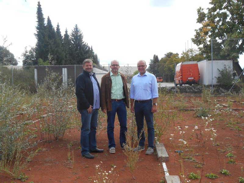 Foto 1. BGM Andreas Strauß, 2. BGM Bernhard Pritscher und Bauamtsleiter Ralf Ringlstetter vor dem Areal Happy Sports.