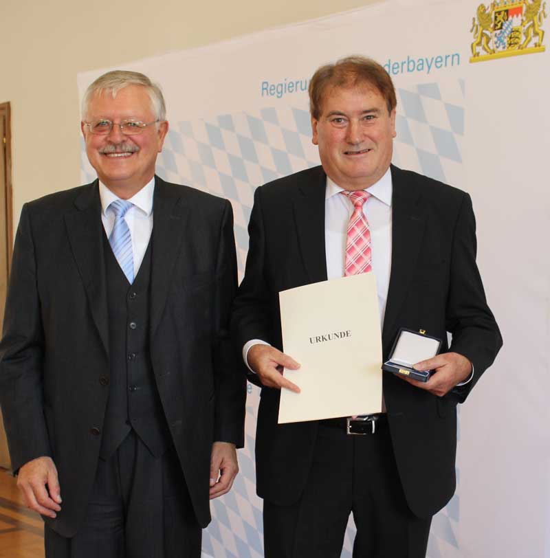 Für besondere Verdienste um die kommunale Selbstverwaltung verleiht das Bayerische Staatsministerium des Innern, für Bau und Verkehr die „Medaille für besondere Verdienste um die kommunale Selbstverwaltung“. Die Auszeichnung besteht aus einer Medaille, einer Anstecknadel und einer Urkunde. Regierungspräsident Heinz Grunwald überreichte Josef Heckner, Mitglied des Kreistags Landshut und ehemaliger Erster Bürgermeister des Marktes Ergolding, die kommunale Verdienstmedaille. Regierungspräsident Grunwald hebt die Leistungen von Josef Heckner wie folgt heraus: „Mit Stolz können Sie heute auf 37 Jahre ununterbrochenes Wirken in der kommunalen Selbstverwaltung zurückblicken. Von 1978 bis 2008 waren Sie Mitglied des Marktgemeinderats Ergolding und in dieser Zeit auch bei uns in der Regierung von Niederbayern ein von allen geschätzter Kollege. Als Sie im Jahr 2008 zum berufsmäßigen Bürgermeister gewählt wurden, haben Sie unser Haus verlassen. Ihr Amt als Mitglied des Kreistags Landshut üben Sie ebenfalls seit 2008 aus.