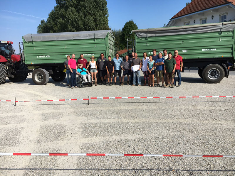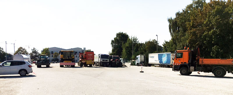 Am Donnerstag, den letzten warmen Sommertag wurde auf dem Ergoldinger Volksfestplatz maßstabsgetreu der geplante Verkehrskreisel Kreuzung Lindenstraße/Rottenburger Straße aufmarkiert und abgesteckt. Die Ergoldinger Landwirte waren eingeladen und kamen mit zahlreichen landwirtschaftlichen Fahrzeugen (vom Traktor mit 2 Anhängern, LKW mit Anhänger, Mähdrescher mit angehängtem Mähwerk usw). Bei dem Fahrversuch sollte geprüft werden, ob der geplante Kreisel auch in der Realität bei diesen großen landwirtschaftlichen Fahrzeugen funktioniert. Andere Fahrzeugarten konnten vom Planungsbüro in der Planung durch sog. Schleppkurven simuliert werden.