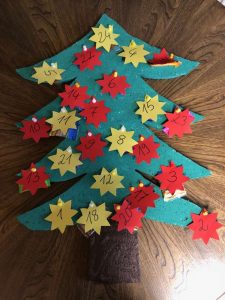 Und als Bürgermeister habe ich in diesem Jahr wieder einen ganz besonderen Kalender vom Kinderhaus am Bründl bekommen. Eine selbstgebastelte Baum mit vielen Süßigkeiten. Vielen Dank und euch viel Spaß mit euren Adventskalendern.