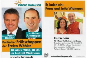 Politischer Frühschoppen der FREIEN WÄHLER am 18.03.18 um 10.00 Uhr im Festzelt Widmann