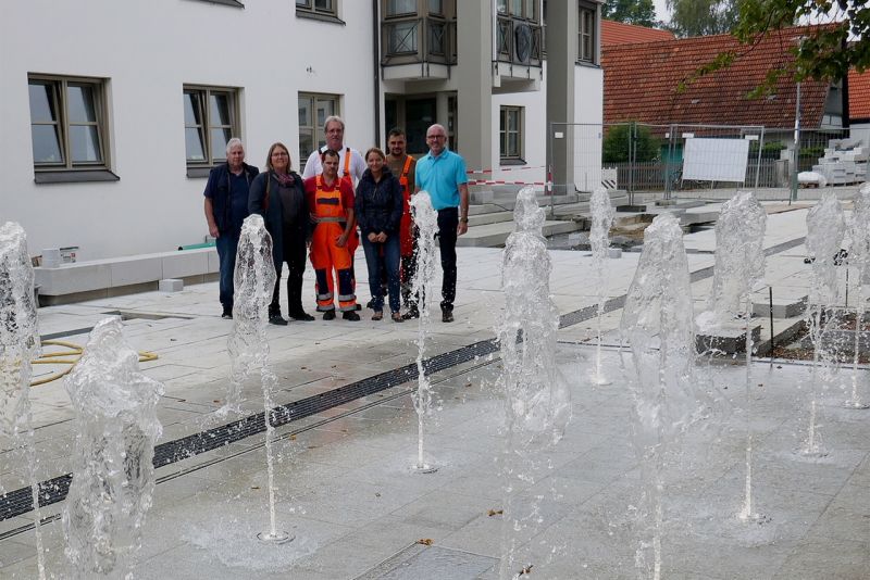 Vor dem Ergoldinger Rathaus geht’s voran. Das Wasserspiel läuft einwandfrei, die Pflasterarbeiten sind weitgehend fertiggestellt. Der Rathausvorplatz erhält den letzten Feinschliff, bevor er Ende September für die Öffentlichkeit wieder zugänglich gemacht wird.