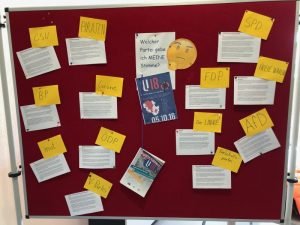 Die U18 Wahl fand am Freitag in der Mittelschule in Ergolding statt. Die Wahl wurde auf Antrag der Freien Wähler und ihrer Jugendbeauftragten Martina Riedl durchgeführt. Die Schülerinnen und Schüler konnten sich anhand einer Schautafel über die Wahlprogramme der Parteien zur Landtagswahl informieren.