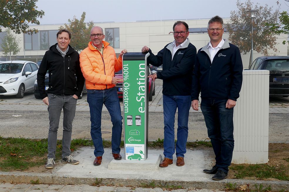Mit dem Bau von drei Ladesäulen möchten auch die ÜZW und der Markt Ergolding die Elektromobilität voranbringen und mehr Lademöglichkeiten schaffen. Der Startschuss der Kommune dafür erfolgte am 04.10.2018 mit der Eröffnung der ersten Ladesäule am Parkplatz des Bürgerhauses. Bei der Ladestation handelt es sich um eine AC Schnellladestation, an der zwei Fahrzeuge parallel mit jeweils bis zu 22kW geladen werden können. Voraussetzung für den Ladevorgang ist lediglich das Vorhandensein eines entsprechenden Ladekabels Typ 2. Derzeit ist das Laden mit Ökostrom ohne Anmeldung und kostenfrei möglich. Für die Errichtung der Ladesäule wurden Fördermittel abgerufen, der Markt und die ÜZW haben die restlichen Kosten (Anschlusskosten) getragen.