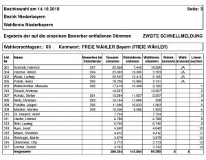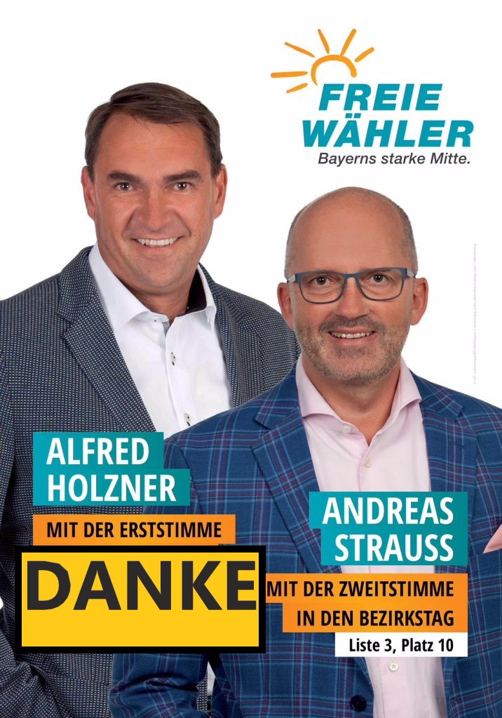 Es hat zwar nicht für einen Sitz im Bezirkstag gereicht, aber durch Ihre Stimmen haben wir über die Zweitstimme einen sehr kompetenten und engagierten Freie Wähler Bürgermeister in den Bezirkstag bekommen, nämlich den Bürgermeister der Stadt Rottenburg Alfred Holzner.