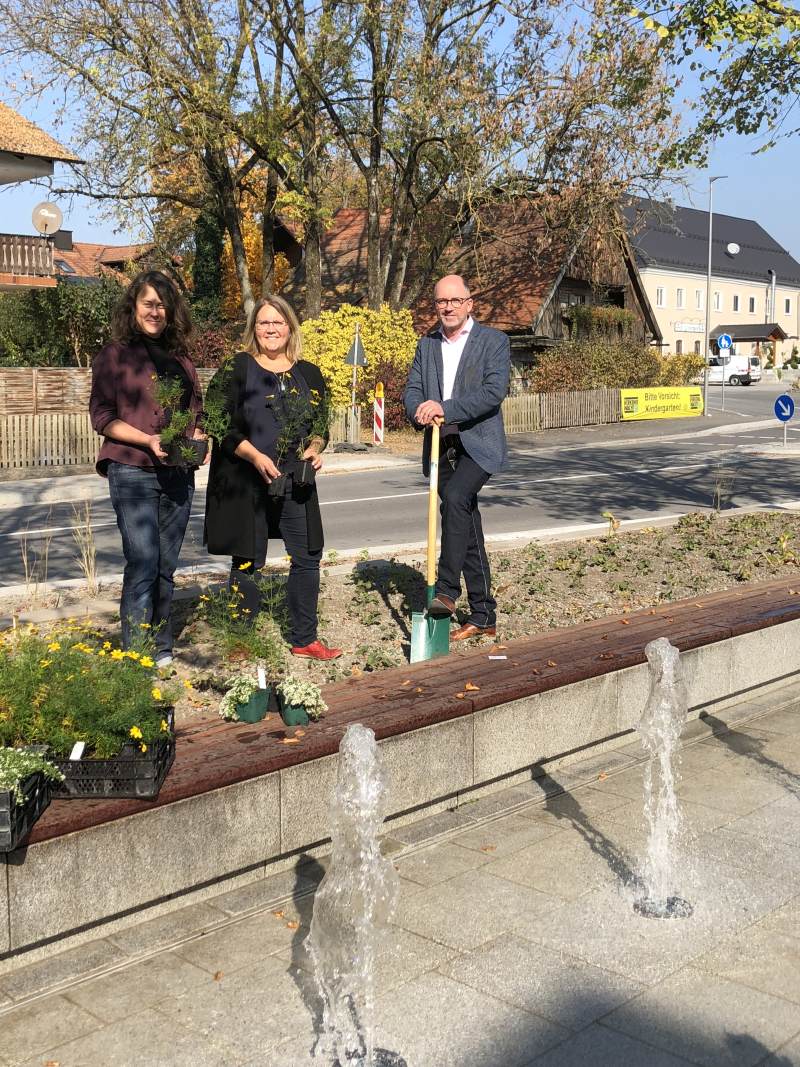 Die Neugestaltung der Lindenstraße in Ergolding geht in die letzte Runde. Nachdem nun auch die Umgestaltung des Rathausvorplatzes nahezu abgeschlossen ist, beginnen jetzt die Arbeiten an den Grünanlagen vom Rathaus bis zur Kirche St. Peter. Am Mittwoch hat Bürgermeister Andreas Strauß mit Sonja Klaus vom Landschaftsarchitekturbüro Büttner + Klaus aus Tiefenbach den offiziellen Startschuss für die umfangreiche Bepflanzung gegeben.