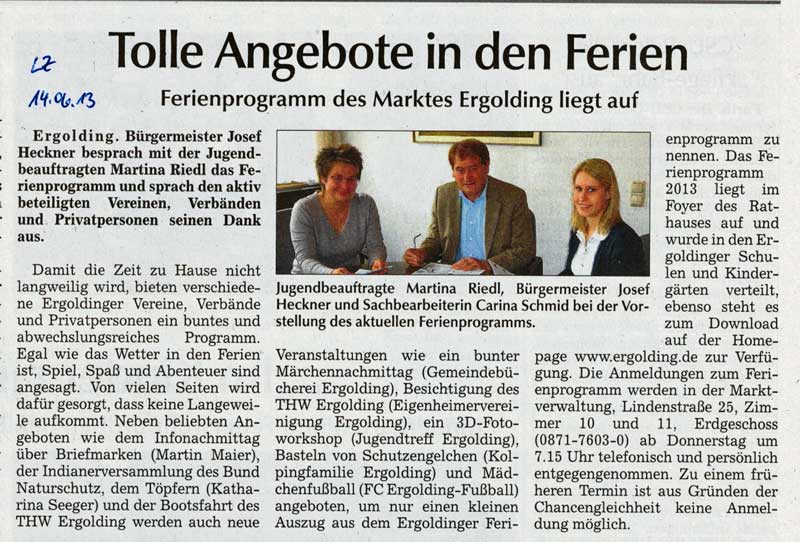 Auch in diesem Jahr hat der Markt Ergolding wieder ein Ferienprogramm auf die Beine gestellt.