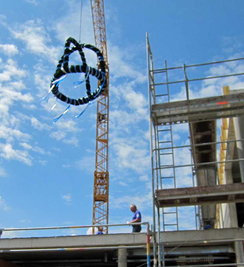 Nach den Ansprachen erfolgte der Richtspruch und es wurde eine schöne große Krone über das Bauwerk gehoben.