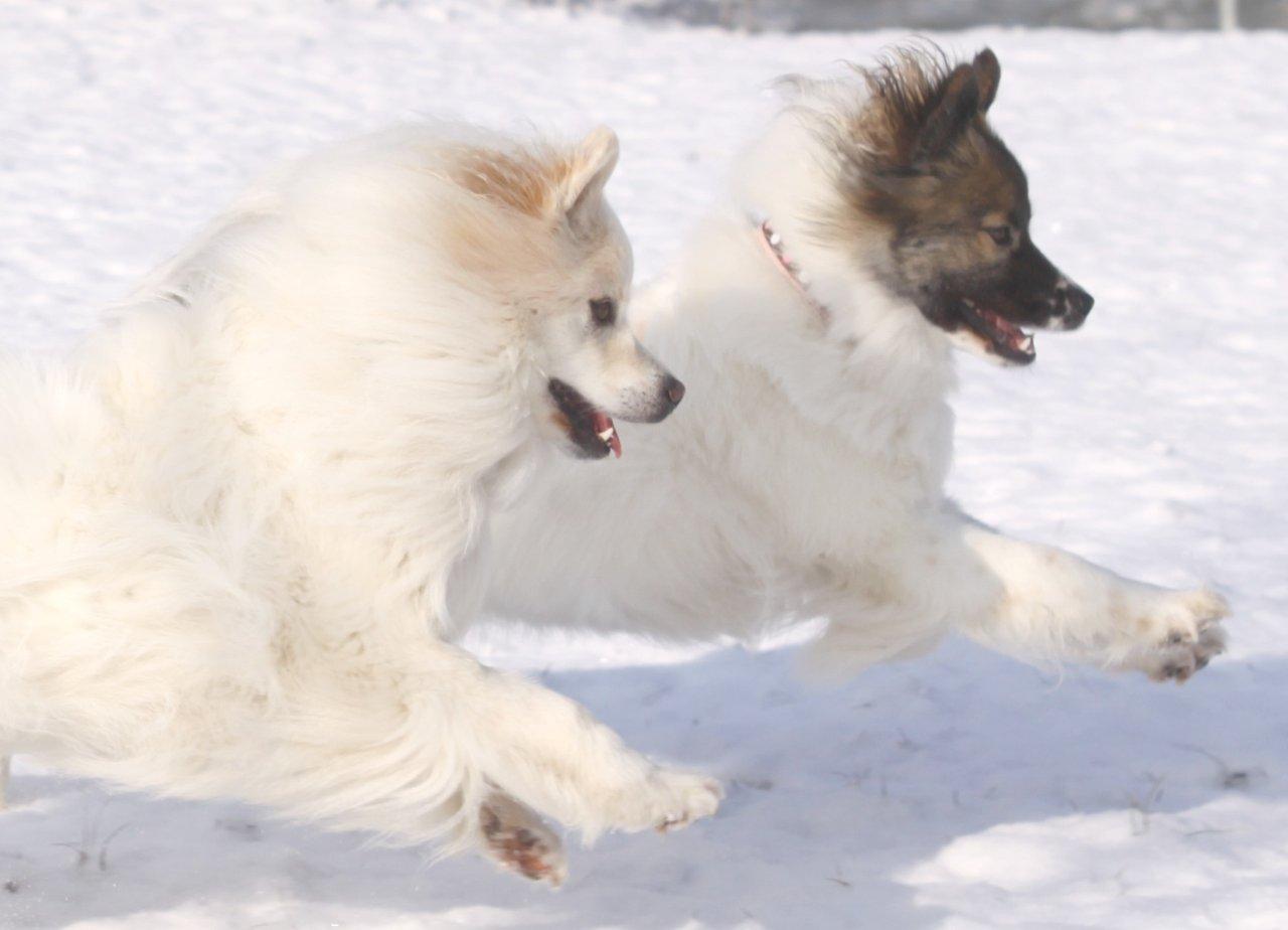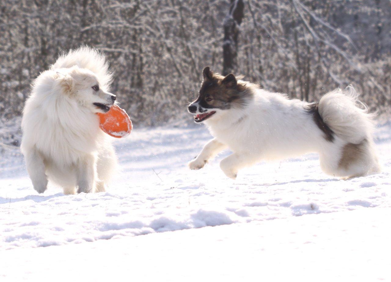Ich kenne aber zwei, die den Schnee so richtig genießen. Milo und Naja sind zwar keine Schneehasen, aber den beiden gefällt der Schnee und das herumtoben sichtlich.