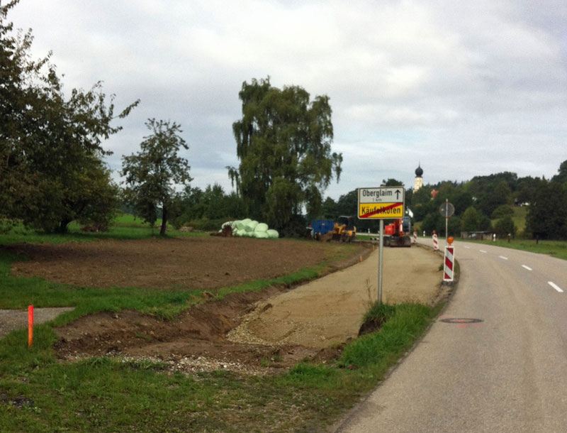 Von Seiten der Freien Wähler wurde beantragt, dass mit dem Landkreis Landshut Gespräche geführt werden sollen, dass der Radweg von Käufelkofen nach Oberglaim in 2013 gebaut wird. Kostenträger und Bauherr ist hier der Landkreis Landshut. Und auch im Jahr 2013 wäre wohl dieser Radweg wieder aus dem Haushalt herausgenommen worden. Der Gemeinderat hat jedoch auf Antrag der FW einstimmig beschlossen, dass der Bau des Radweges 2013 durchgeführt werden sollte und der Markt Ergolding dies vorfinanzieren würde. Ein entsprechender Antrag wurde beim Landkreis Landshut gestellt. Letzte Woche haben die Baumaßnahmen zum neuen Weg nach Oberglaim begonnen. Bald können wir also auch gut auf 2 Rädern nach Oberglaim rollen.
