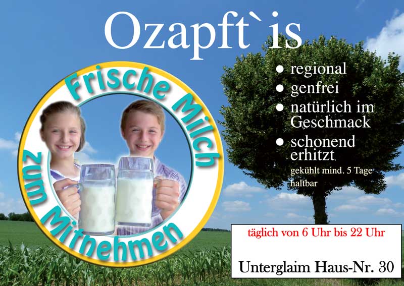 Auf der Pollner Ranch von Bernhard Pollner Dekan-Simbürger-Str.20 gibt es seit Jahren rund um die Uhr Frischmilch (Rohmilch).