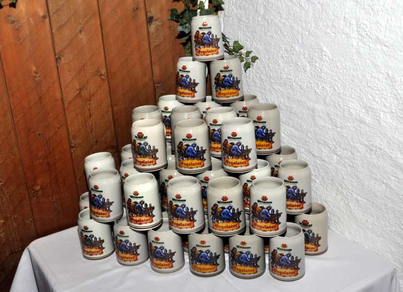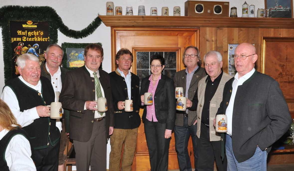Die Runde der Hockerbergsänger mit Verantwortlichen der Brauerei Wittmann mit Wirt Helmut Geiger