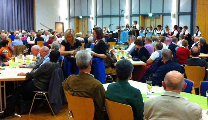 Am Abend fand wieder mal der Hoagarten im Ergoldinger Bürgersaal statt. Der Saal war bis auf den letzten Platz besetzt. Die Musiker und Sänger hatten ein vielfältiges Programm vorbereitet und unterhielten uns mit Witz und Gesang. Durch das Programm führte gekonnt Elisabeth Plötz, welche mit guten Witzen die Stimmung immer wieder anheizte. So kam ein gmüatlicha boarischa Abend raus.