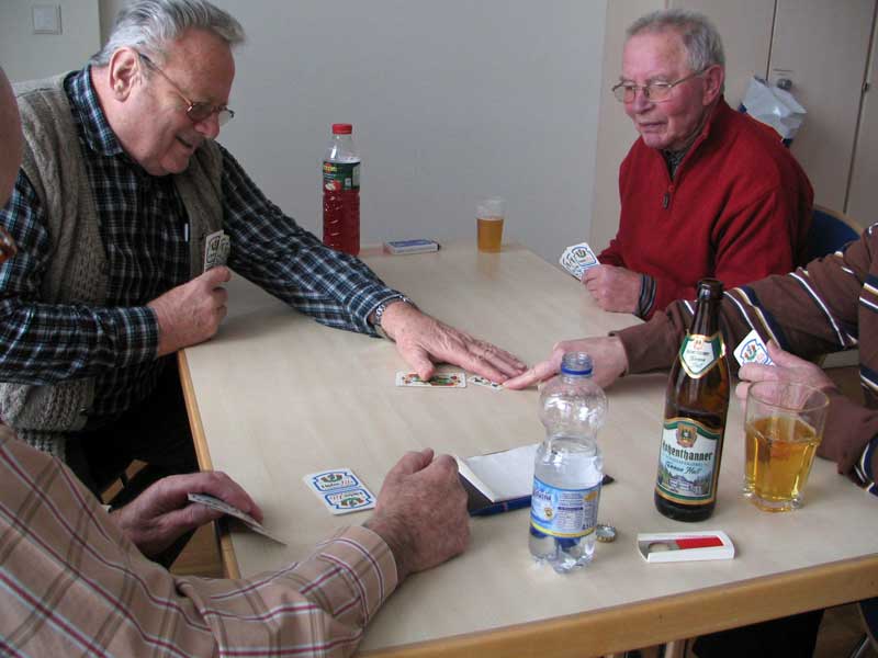 Jeden 2. Montag im Monat treffen sich die Seniorinnen und Senioren des VdK Ortsverband Ergolding zum Spiele-Nachmittag. Um 14:00 Uhr geht es los und dauert bis ca. 16:30 Uhr. Es treffen sich in gemeinsamer Runde zwischen 20 und 30 Spielbegeisterte. Sowohl klassische als auch bisher unbekannte Gesellschaftsspiele begeistern regelmäßig die Gäste eines gemütlichen Spielnachmittags im Bürgerhaus Ergolding. Bei einem Glas Limonade manchmal auch ein Gläschen Wein oder Bier wird der Spiele-Nachmittag von den Damen durch eine Partie Rommé eröffnet. Die Herren standen dem in nichts nach und spielten eine Runde Watten. Ob Halma, Mensch ärgere dich nicht, Wallach oder Rummikub , alles ist möglich und macht in größerer Runde viel mehr Spaß. Die Spielregeln werden streng eingehalten und mogeln ist nicht erlaubt, auch wenn das den Einen oder Anderen nicht so gefällt.
