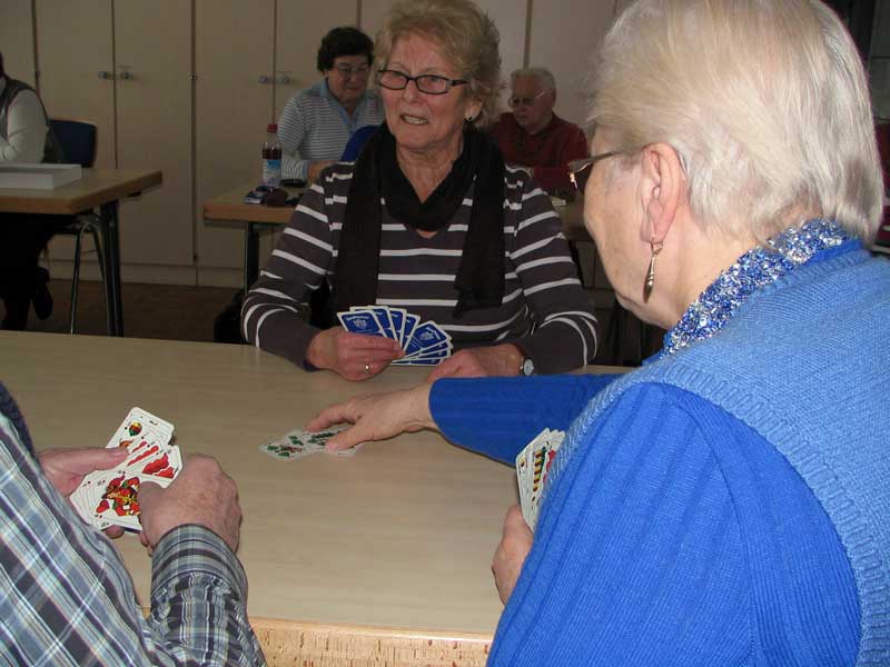 Viele der Teilnehmer treffen sich regelmäßig hier und das bereits seit 6 Jahren zum Spiele-Nachmittag. So manche Gäste sind von Anfang an dabei und kein Nachmittag wurde ausgelassen. Nach gewisser Zeit steigt die Spannung an den Tischen – wer gewinnt dieses Spiel? An der Gesichtsfarbe oder den roten Backen ist leicht zu erkennen, dass die Spannung ansteigt. Eine große Freude beim Sieg am Spiel ist nicht zu übersehen.