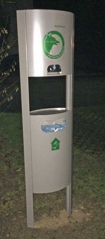 Liebe Hundebesitzer, bitte verwenden Sie diese neue Einrichtung. Bei positiver Bewertung wäre die Beschaffung weiterer solcher Stationen aussichtsreich.