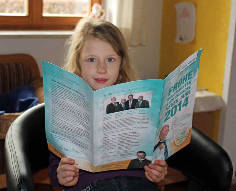 Von Andreas Strauß | 17. Dezember 2013 | Kategorie: Allgemein | Kommentare deaktiviert für Sophia prüft den Weihnachtsflyer der Freien Wähler