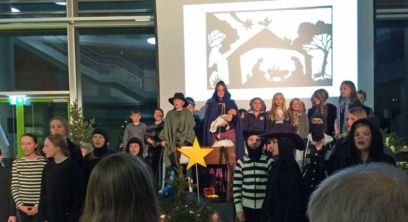 Das Programm war sehr umfassend. Beeindruckend war wiederum, was die Kinder innerhalb von 3 Monaten bereits auf ihren Musikinstrumenten spielen können. Von Klavier, Gitarre, Klarinette, Querflöte, Saxophon, Cello und Violine war alles dabei. Auch ein weihnachtliches Singspiel wurde einstudiert und vorgetragen. Abschließend sang auch der Eltern-Lehrer-Chor noch zwei Lieder.